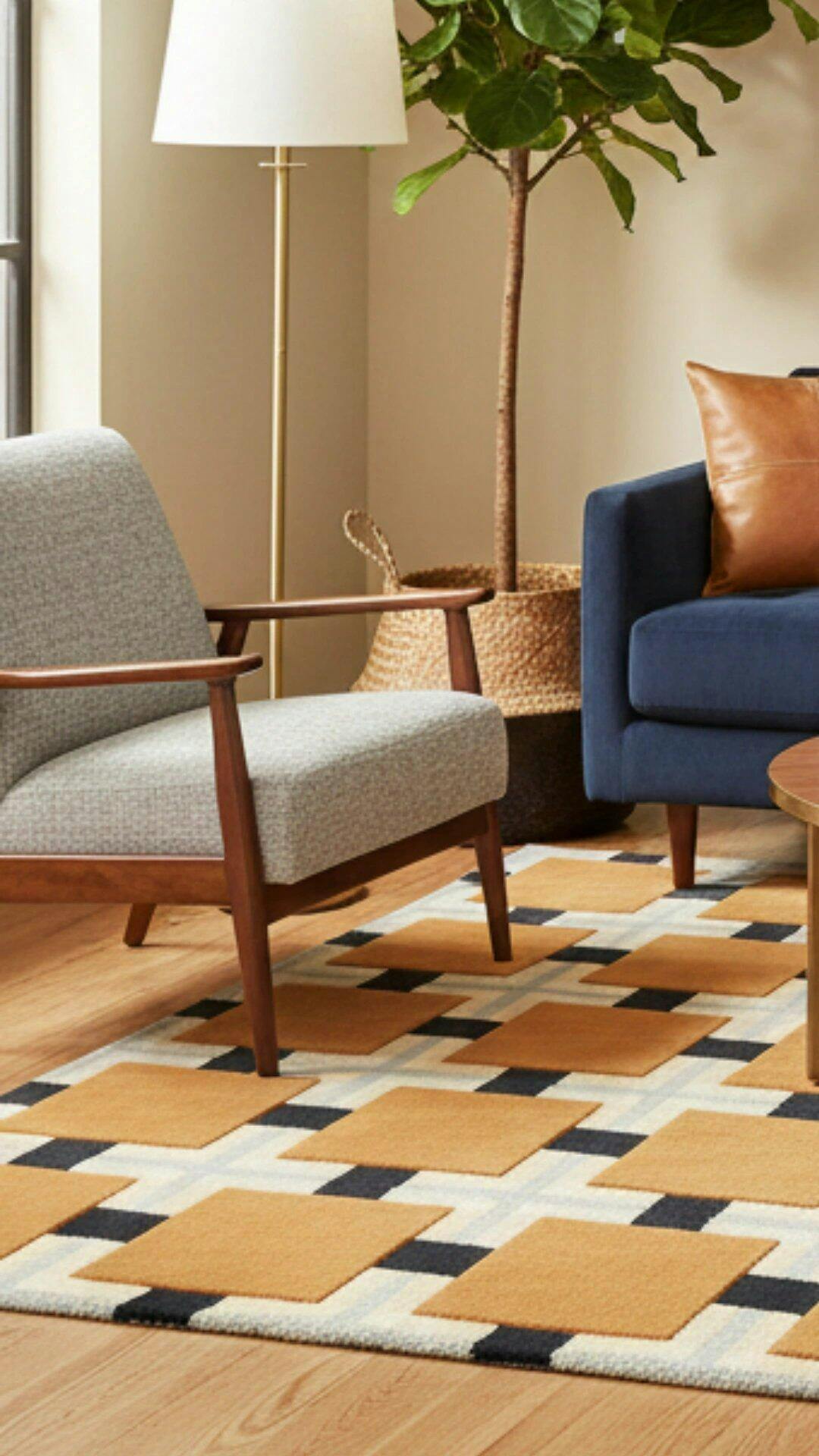 This rug looks beautiful in my living room. The wool quality feels thick and luxurious, and the texture is very soft underfoot. The beige and terracotta colors are warm and rich, exactly like the photos. The grid design gives my space a modern, designer look.