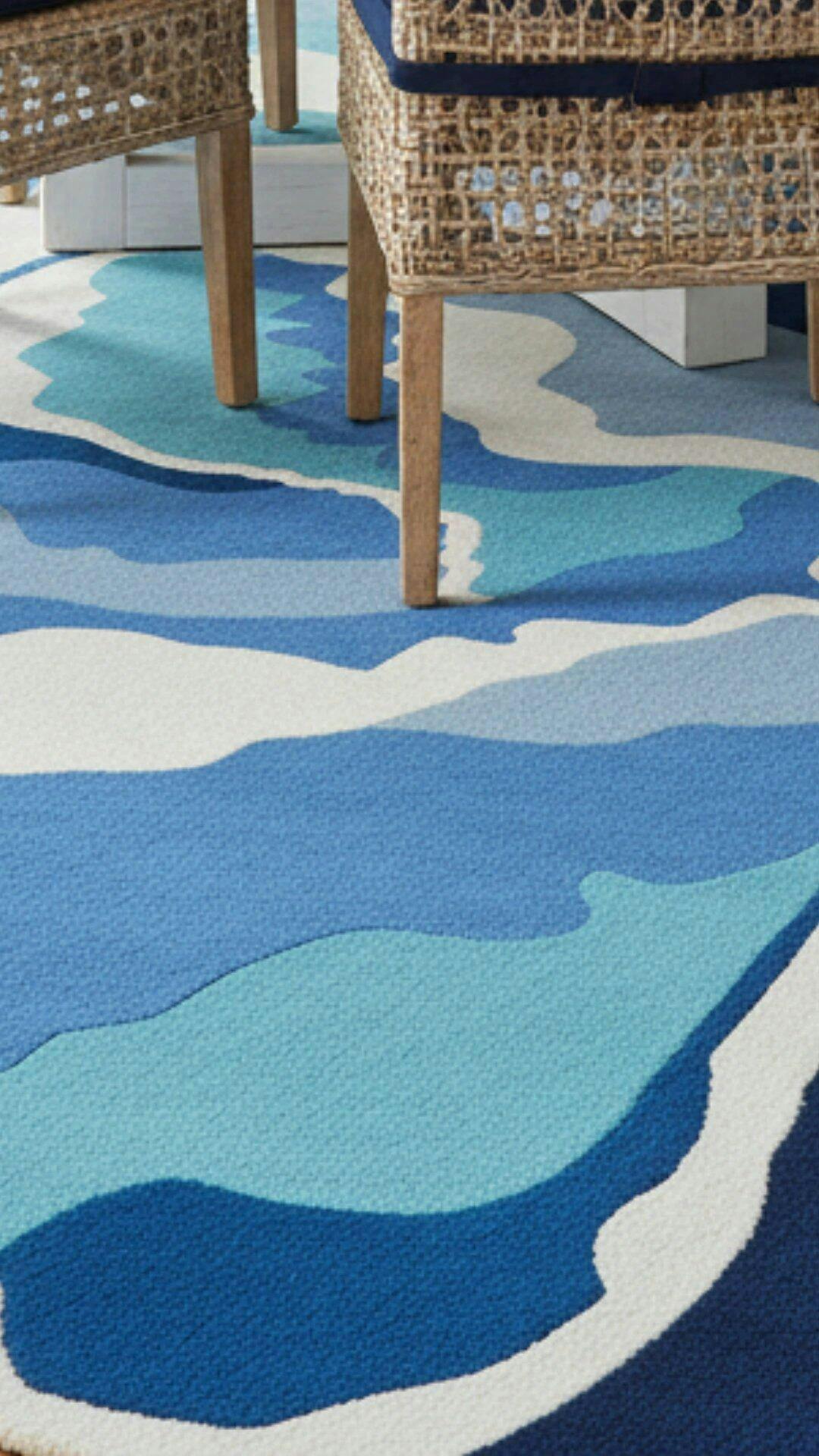 Our Blue Coastal Drift Abstract Hand-Tufted Wool Rug blends oceanic hues with soft texture, bringing serene beauty and comfort to coastal or contemporary spaces.
