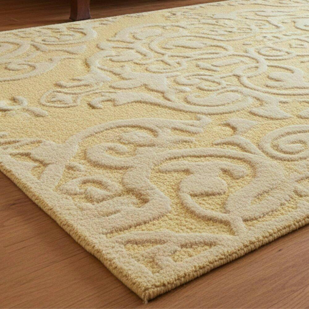 • Product Name: Gold Traditional Damask Embossed Hand-Tufted Rug.