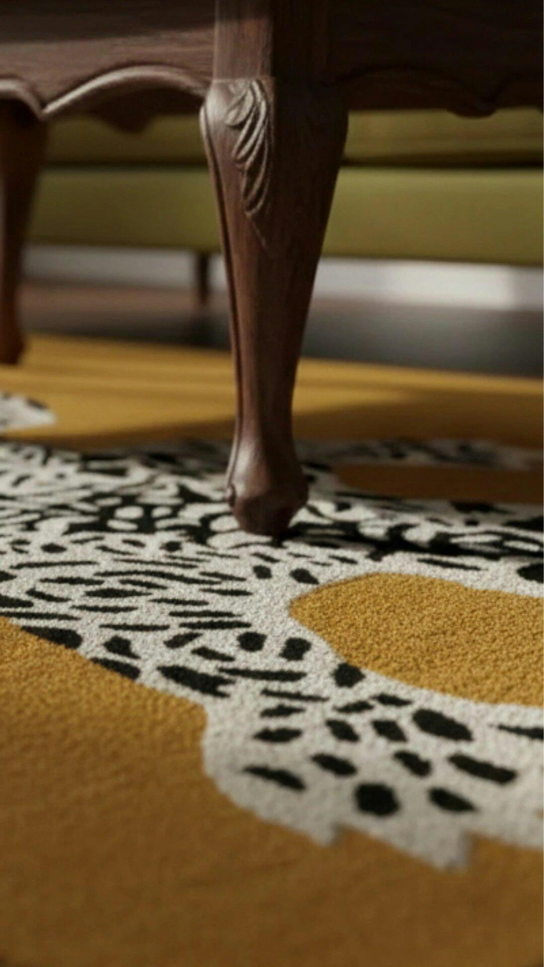 Featuring a bold leopard design on a mustard yellow base, this hand-tufted wool rug brings fierce style, warmth, and a statement look to modern or eclectic interiors.